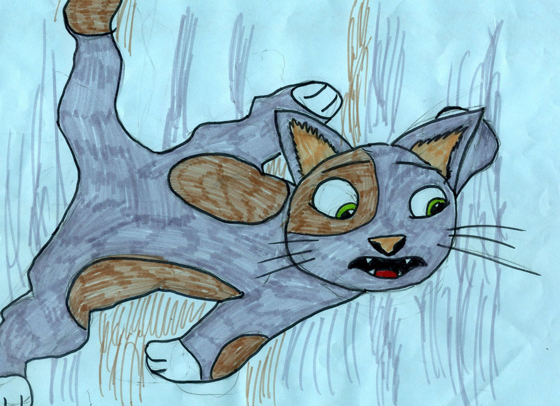 Иллюстрация к произведению "Секретная организация животных"(см.предыдущий пост) . Кошка Камбала падает в люк.